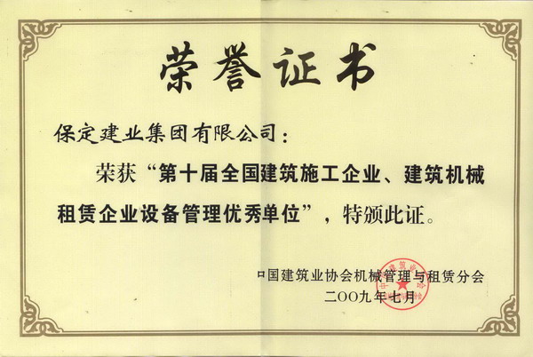 保定市2010年度先進建筑施工企...