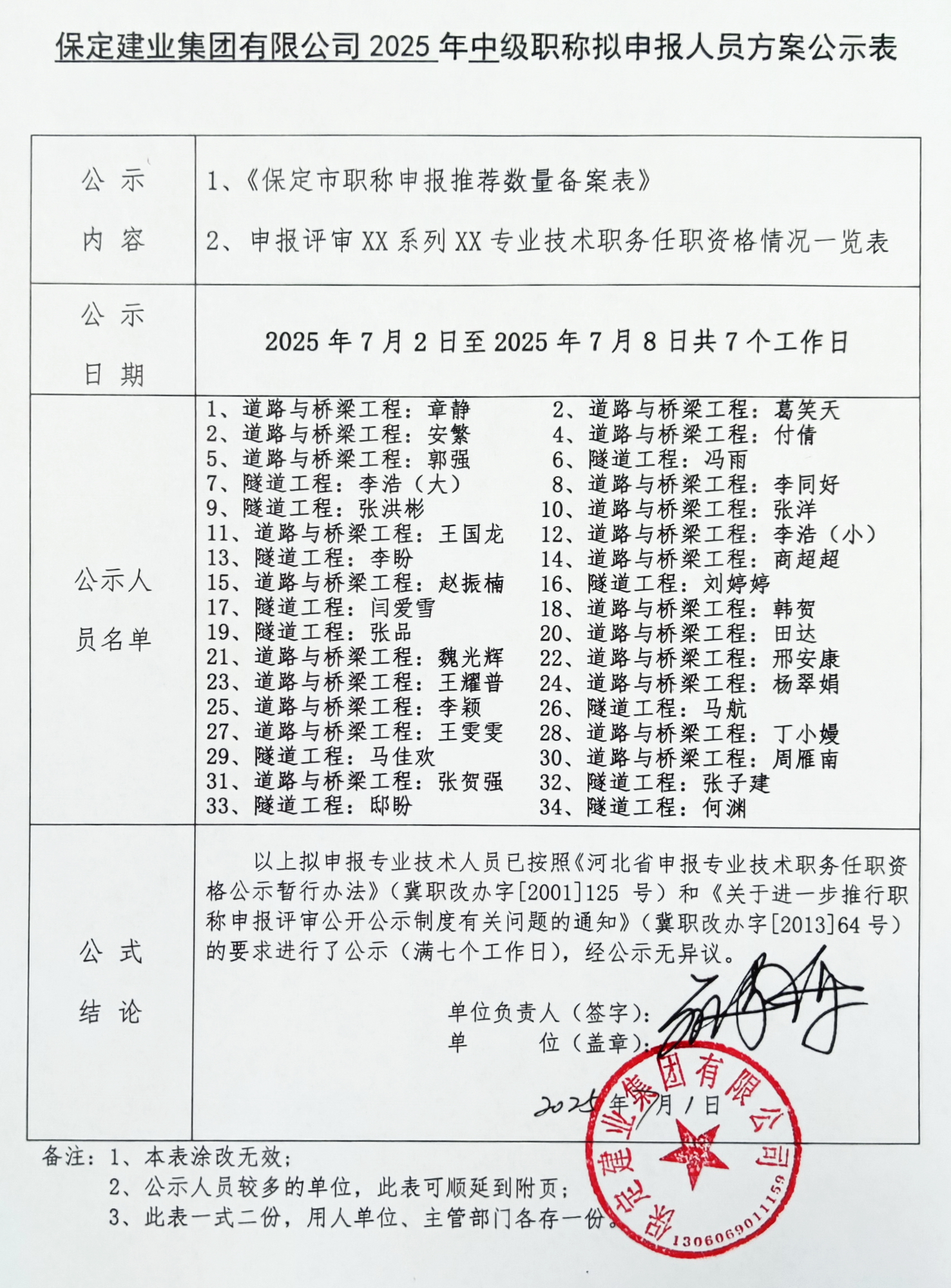 保定建業(yè)集團(tuán)2025年中級職稱擬申報(bào)人員公示二