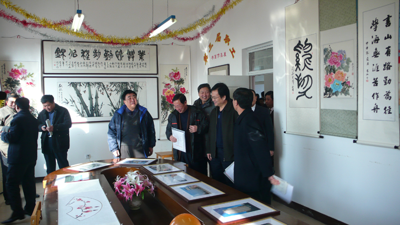 董事長張蘭柱陪同建設局領導參觀十周年書畫展