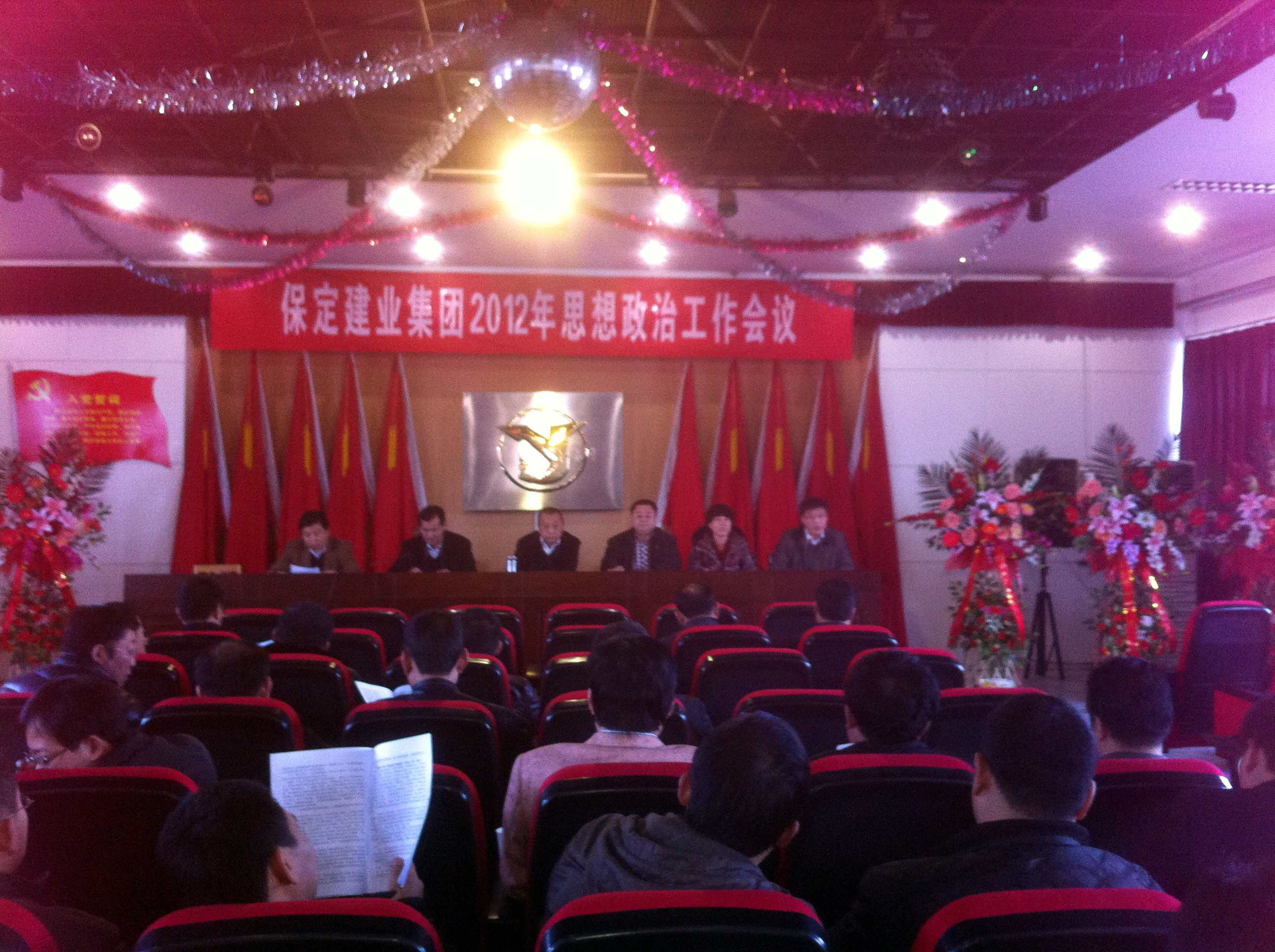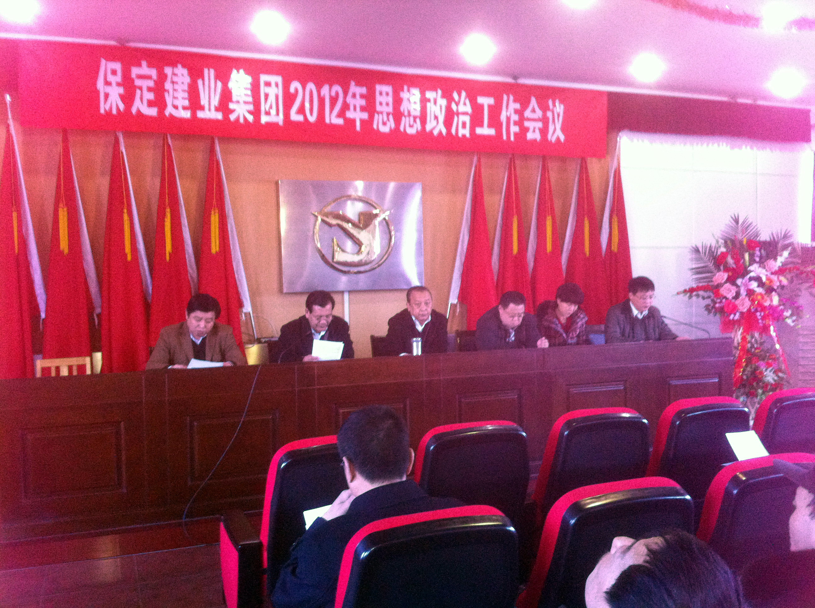 2012年3月14日,保定建業集團有限公司2012年思想政治工作會議在莊嚴的國歌聲中拉開了序幕,會議由黨委辦公室主任馬亞軍主持,集團各公司黨、政、工、團、婦、武裝、保衛負責人參加會議。
